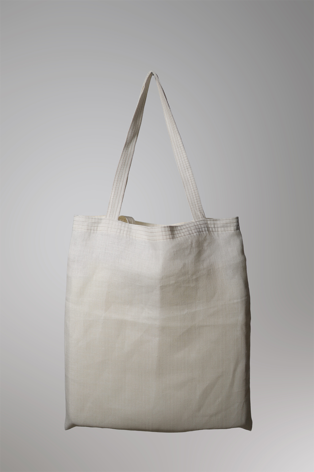 • Saco de tecido cru com alças e textura visível