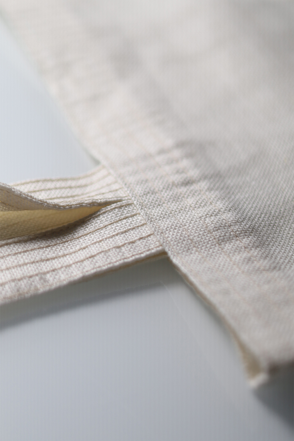 • Pormenor de tecido bege claro com costura dupla